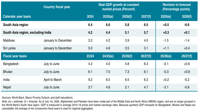 WASHINGTON, 7 octobre 2025 – La croissance en Asie du Sud devrait être soutenue cette année, à 6,6 %, mais un ralentissement sensible se profile à l’horizon. Des réformes visant à promouvoir l’ouverture commerciale et l’adoption technologique pourraient aider la région à créer des emplois et à stimuler la croissance, selon le bulletin semestriel de la Banque mondiale consacré à la conjoncture régionale.